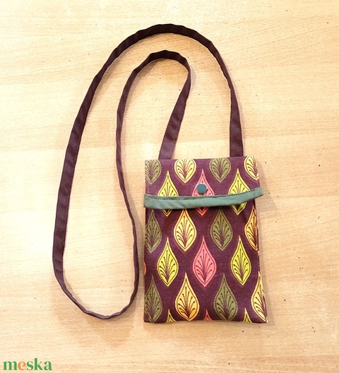 Nyakba akasztható mobil tok - barna alapon őszies pávaszemek