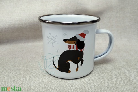 Téli Karácsonyi Zománc Bögre - Fekete Mikulás Tacskó