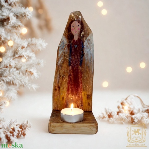 Rusztikus Fa Mécsestartó - Ajándék ötlet - Karácsony, Dekoráció, Angyal, Tündér, Gyerekszoba