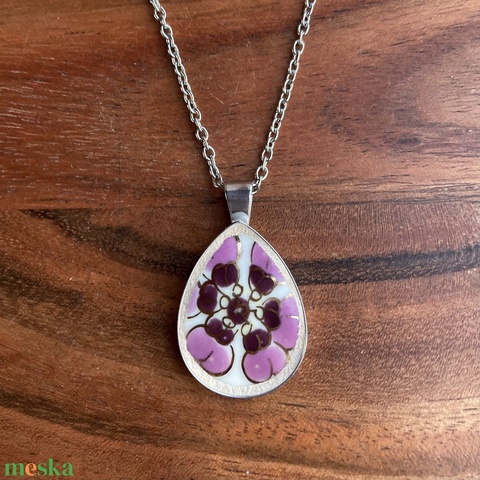 Zsolnay mentett darabok - porcelán nyaklánc - nemesacél csepp medálos nyaklánc