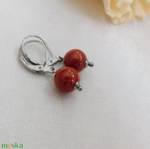 Orvosi acél szerelékre akasztott vörös jáspis.