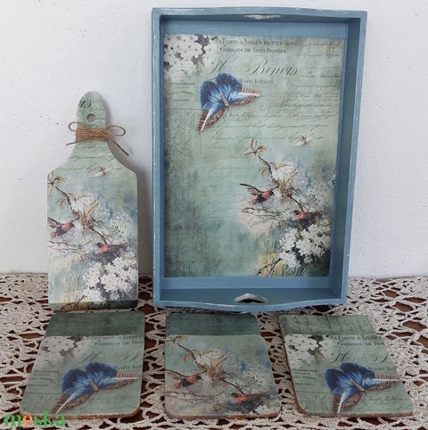 Pillangós-madaras-virágos fatálca, falidísz, poháralátét szett