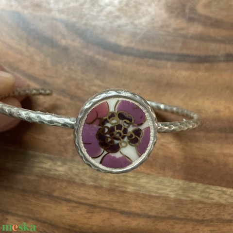 Zsolnay mentett darabok - virágos porcelán karperec - állítható