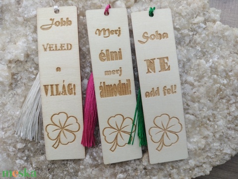 Könyvjelző motivációs felírattal ajándék gravírozott négylevelű lóhere