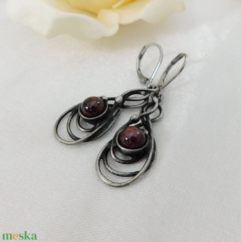 gránát, rézdrót, ólommentes ón, felületkezelő anyagok, acél fülbevaló akasztó, réz, ón, acél
