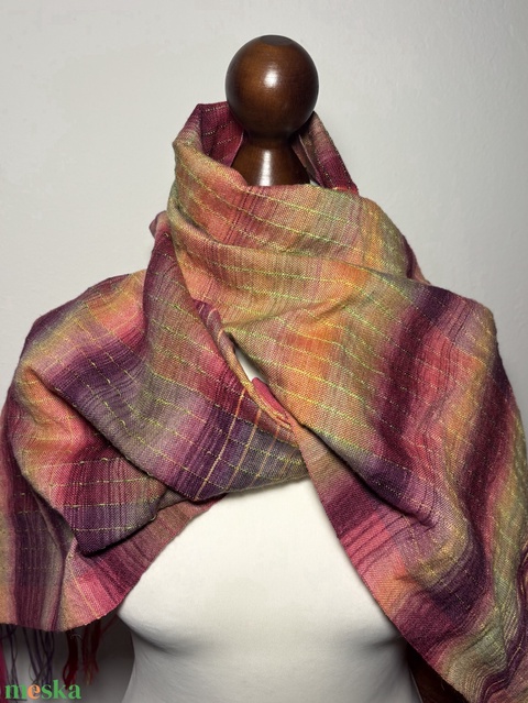 Kézzel szőtt Zöld Mályva Merinó és Teveszőr Kendő