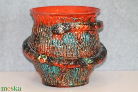 fazekas agyag, vörös máz, engó festék, réz oxid