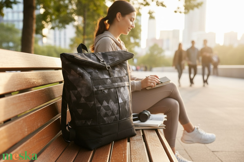 Szerelemtáskád - Blaur fekete fehér geometriai mintás rolltop hátizsák