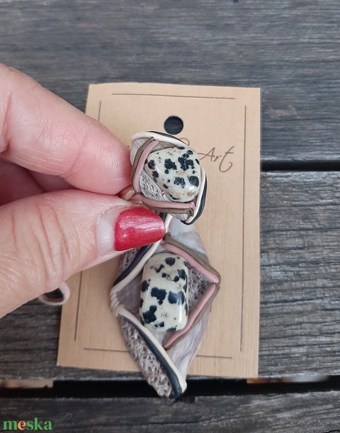 - Anyaga: süthető gyurma, fém szerelvények, bőrszál, féldrágakő