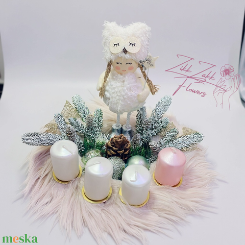 Adventi Koszorú – Téli Angyalka és Pasztell Gyertyák Díszítéssel