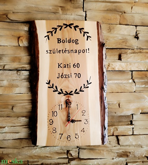 Egyedi, fából készült falióra születésnap alkalmából nevekkel