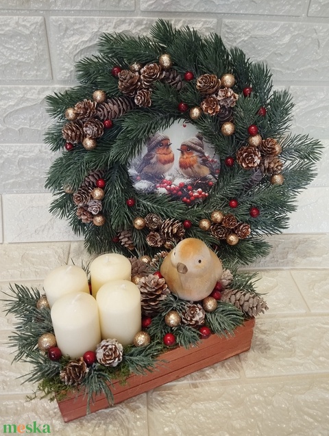 Madárkás adventi szett, élethű 3d fenyővel