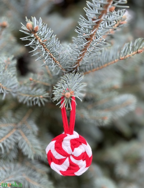 Horgolt karácsonyfadísz, cukorka