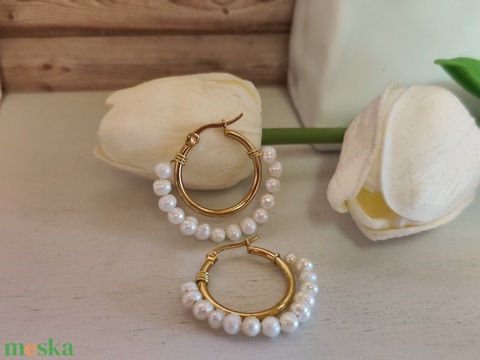 Különleges nemesacél fülbevaló, tenyésztett gyöngyökkel!