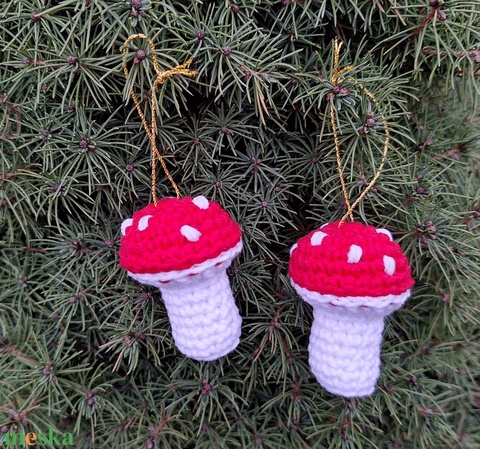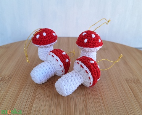 Horgolt gomba karácsonyfadísz – 4 db-os szett