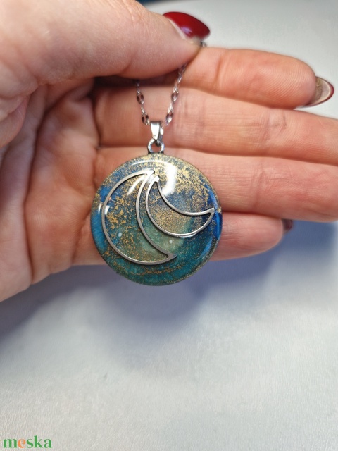 - Anyaga: szerelékek, lánc, medál alap, alkohol ink, epoxy