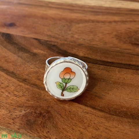 Herendi mentett darabok - porcelán gyűrű - virágos, állítható