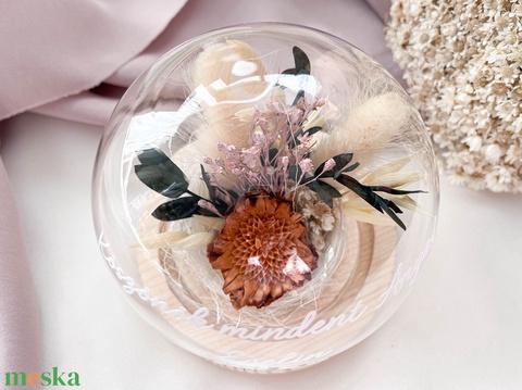 Esküvői szülőköszöntő üvegbúra édesanyáknak, nagymamáknak - narancs-protea margaréta
