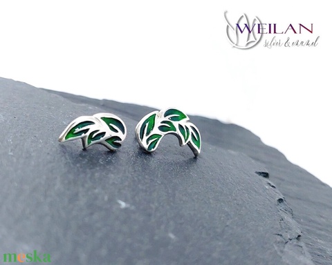 Leaf - Laurus / Babér aszimmetrikus ezüst tűzzománc fülbevaló, zöld