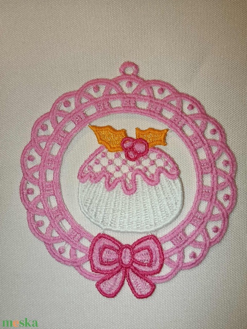 Csipke dísz keretben, többféle, felakasztható - Színes dísz