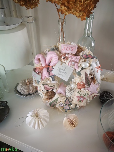 - Anyaga: pamutvászon, szárazdekorációk, zsineg, karácsonyfadísz, szalmakoszorú