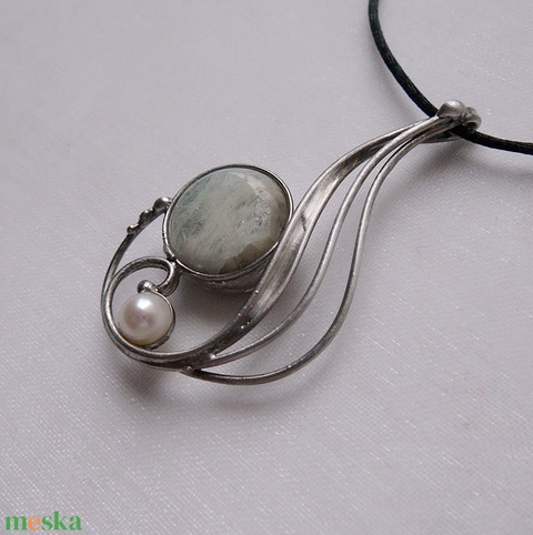 45 cm hosszú, nikkelmentes zárral ellátott szaténzsinórra akasztottam. A zsinór hosszát igény szerint méretre igazítom.