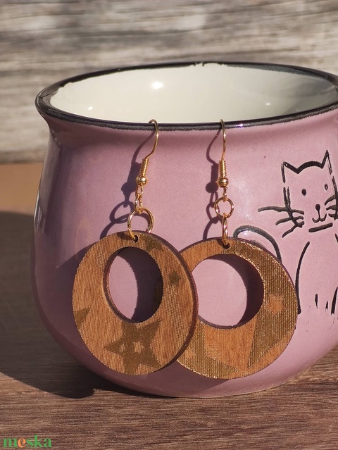 Karácsonyi fülbevaló - fából, csillagokkal