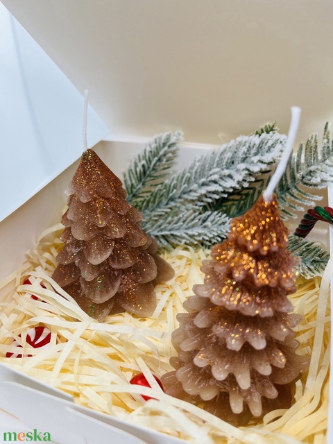 Kézzel öntött karácsonyfa gyertya szett – Csillámos, ünnepi hangulatban