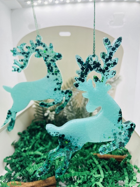 Epoxy rénszarvas dísz szett – Zöld csillogás