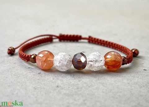 Hematoidkvarc és roppantott hegyikristály makramé karkötő