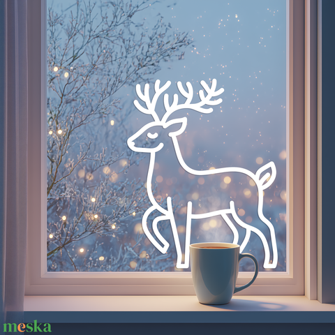 Fehér szarvas ablakmatrica – fehér öntapadós fóliából, több méretben