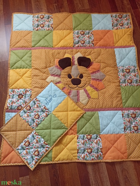 Patchwork babatakaró kis oroszlán ???? névvel és kis párnával