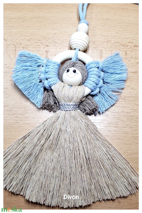 Angyalka, makramé fonással karácsonyi ajándék dísz