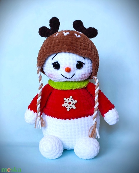 Horgolt hóember rénszarvas sapkában