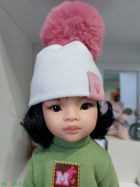 Paola Reina beige kötött sapka sötétrózsaszín bojttal
