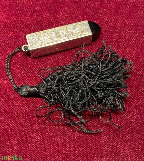 Art Deco finom ezüst rúzstartó bojttal – gravírozott virágdíszítéssel, 1920–1930-as évek