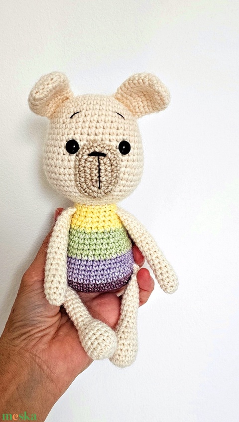 - Anyaga: bizt.szem, vatelingolyó töltet, pamut-akril fonal
