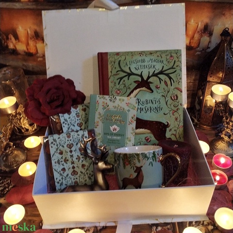Rubintos mesekönyv ajándékcsomag csokoládéval és teával - Mesés családi gasztroajándék olvasóbox. A népmesék nemcsak történetek – hidak generációk között. A Rubintos mesekönyv köré épülő ajándékcsomag egy olyan közös élményt teremt, ahol a gyerekek, szülők és nagyszülők együtt merülhetnek el a varázslatban, a meghittségben és az otthoni mesedélutánok hangulatában.