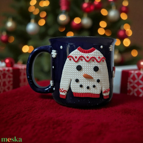 Ronda pulcsis bögre/karácsonyi csupor süthető gyurmával díszítve.