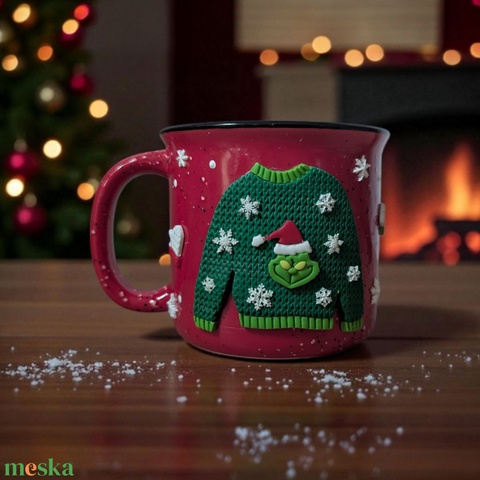 Ronda pulcsis bögre/karácsonyi csupor süthető gyurmával díszítve.
