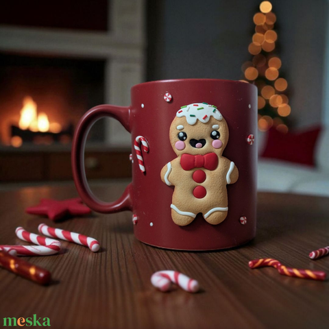 Mézeskalácsos bögre/karácsonyi csupor süthető gyurmával díszítve.