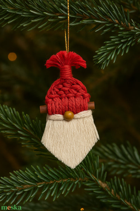 Mikulás makramé karácsonyfadísz