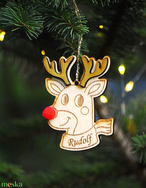 Szarvasos fa karácsonyfa dísz név gravírozással