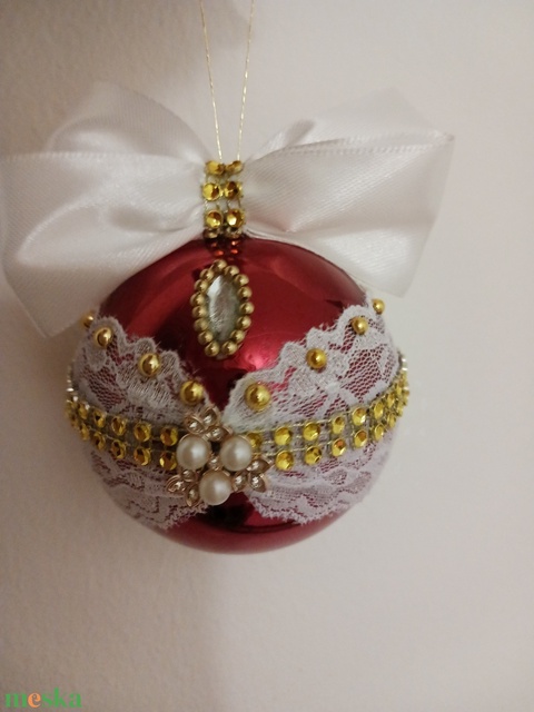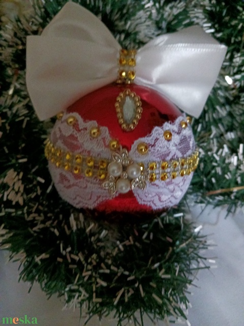 Piros,csipkés,diszitett gömb