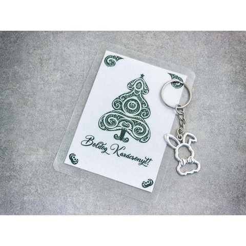 Boldog Karácsonyt stílusos nyuszi medálos kulcstartó