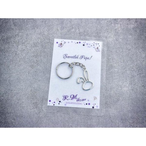 Szeretlek Papa egyszerű nyuszi medálos kulcstartó