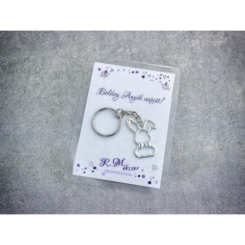 Boldog Anyák napját stílusos nyuszi medálos kulcstartó