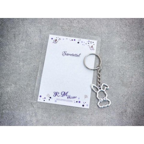 Szeretettel stílusos nyuszi medálos kulcstartó
