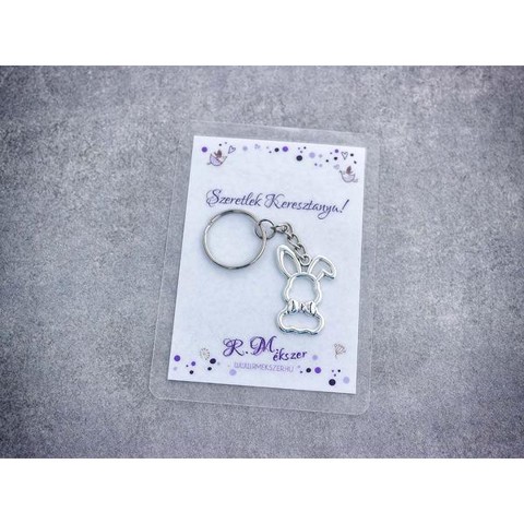 Szeretlek Keresztanya stílusos nyuszi medálos kulcstartó