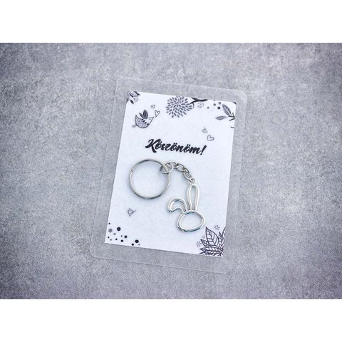 Köszönöm egyszerű nyuszi medálos kulcstartó